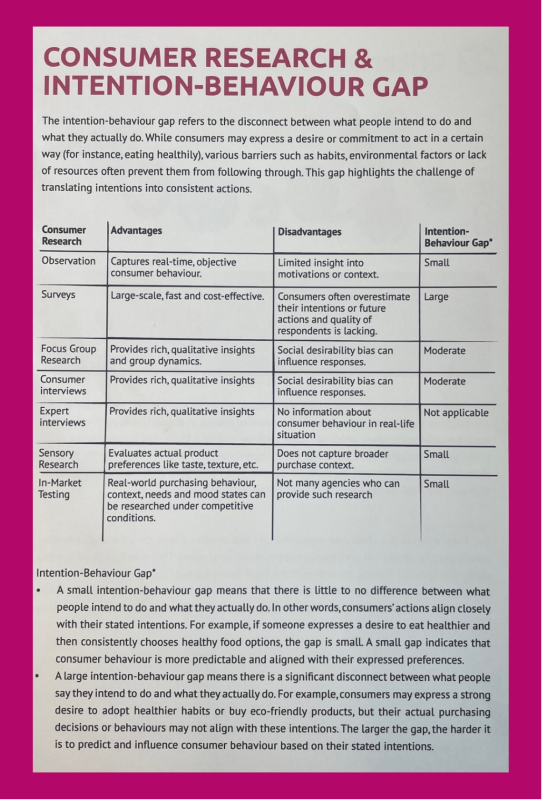 In Mastering Food Innovation: Impact by Design beschrijft Mary van Hoek-Hendriks dit haarscherp. Consumenten hebben vaak de beste bedoelingen, maar in de praktijk winnen gewoontegedrag, gemak en context het bijna altijd van wat ze van plan zijn. En juist in FMCG is die kloof vaak groter dan merken denken.